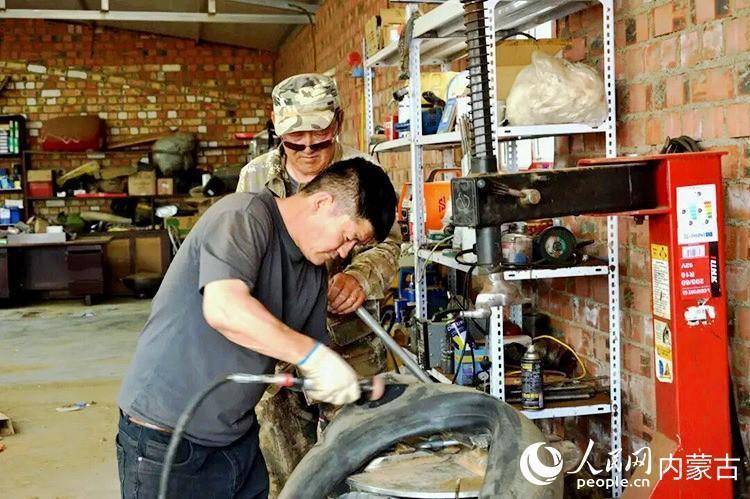 钢宝力达为牧民修车。内蒙古自治区文明办供图