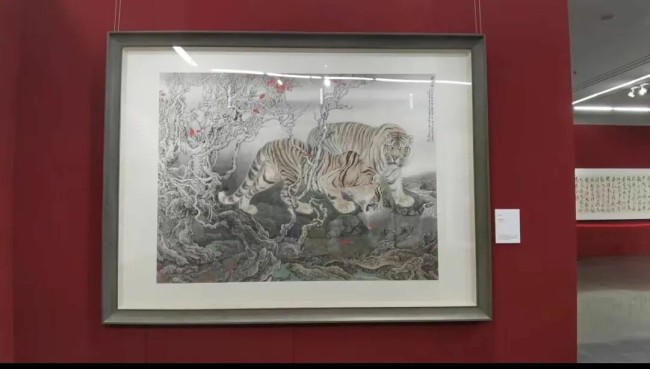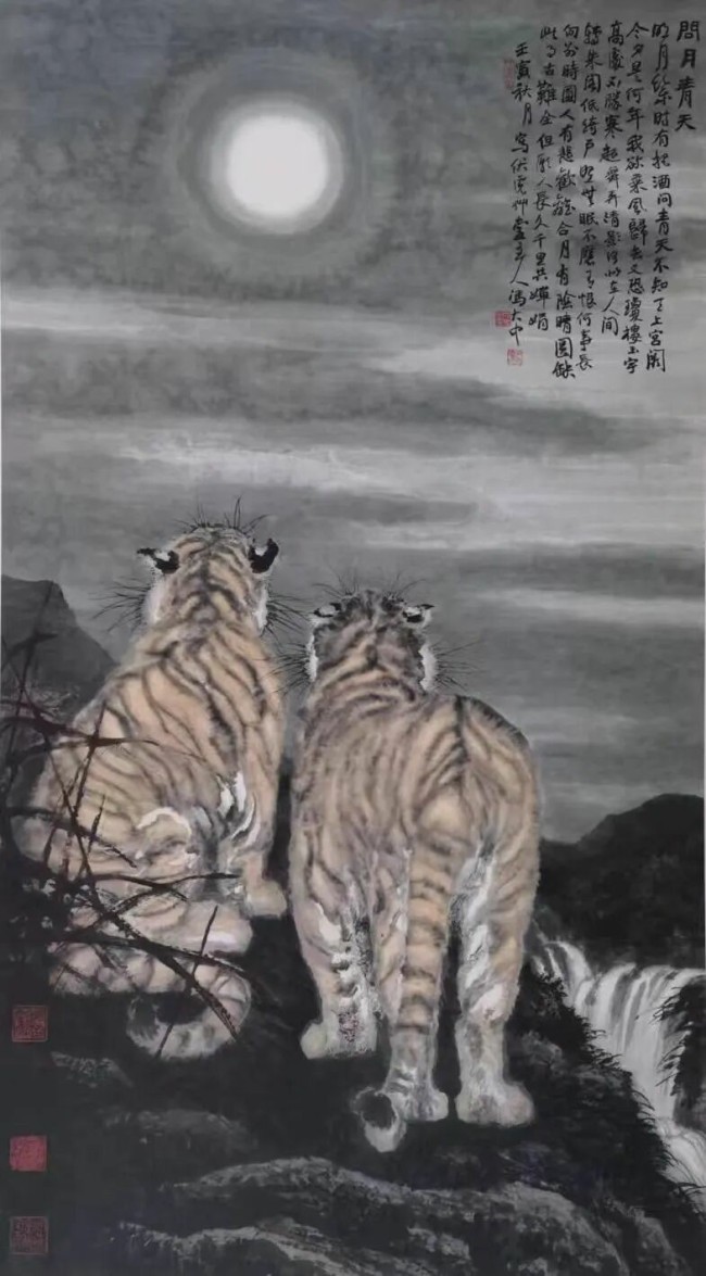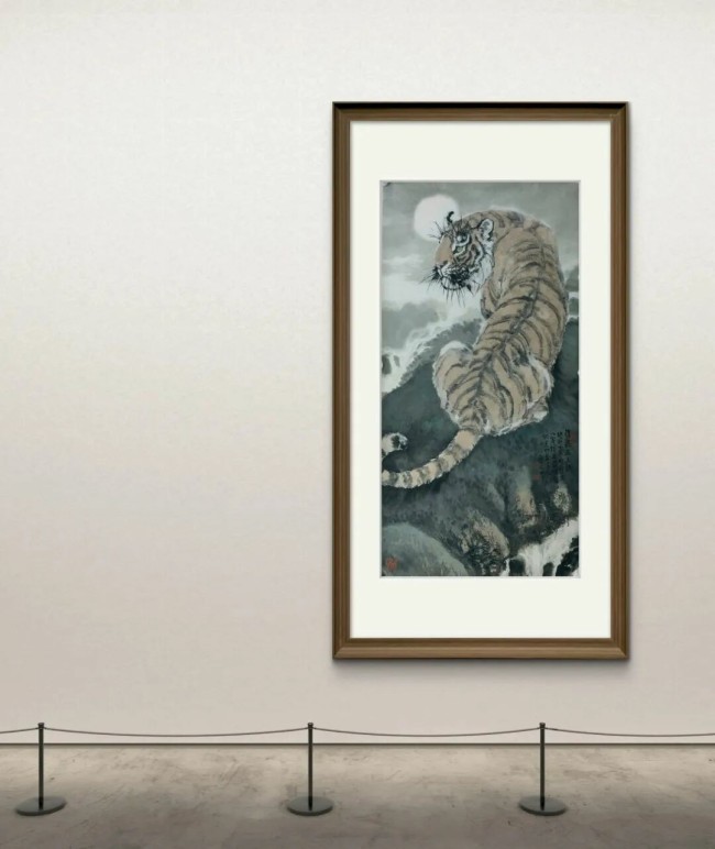 拜读冯大中的作品,他有着自己的明显特征,也就是中国画的民族性和时代性,它充分地体现在作品的笔墨之中。黄宾虹先生在他的画学思想中有一句话,说得非常有力,非常响亮,非常的旗帜鲜明,他说,“国画民族性,非笔墨之中无所见”。笔墨取决于天赋、才情、修养,综合体现画家的个性品质。有什么个性,就有什么笔墨。就笔墨而言,则同根同源。无论岁月轮换、斗转星移,中国画传统的基因不能变,底色更不能丢。既要注重从传统中汲取营养,又要善于从传统中走出来锤炼特色。因此,冯大中面对多元的文化及思潮,不畏浮云遮望眼,任尔东南西北风,他有志于为中国画立传的风骨和定力。既遵规守矩不走歧途,又匠心独运守正创新,他画虎、黄河等题材独特的表现形式和笔墨个性,成为中国当代绘画史上独树一帜的画种,其影响之深、成就之大、蔚为大观。