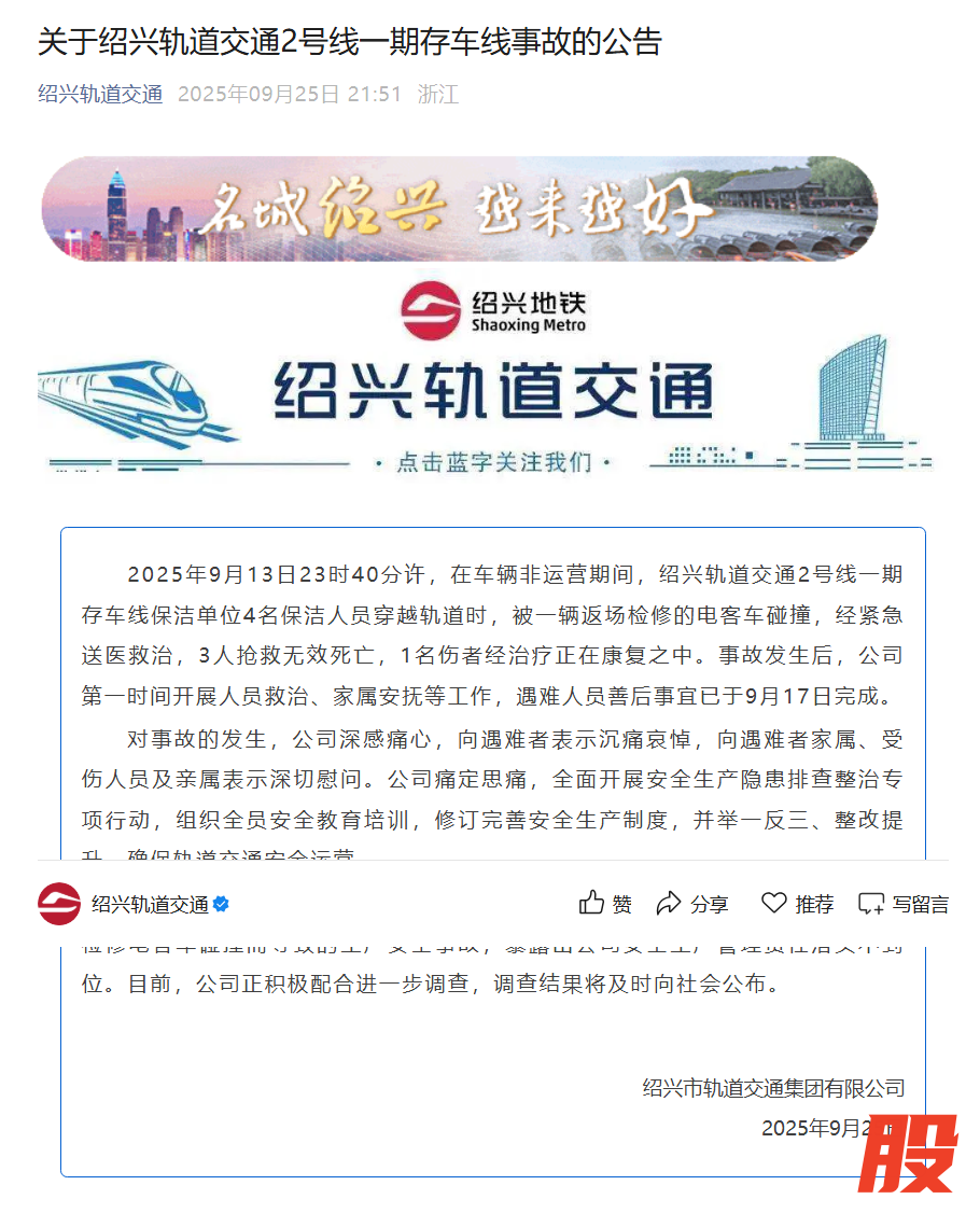 绍兴通报地铁深夜撞人事件:3人抢救无效死亡绍兴通报地铁深夜撞人事件:3人抢救无效死亡